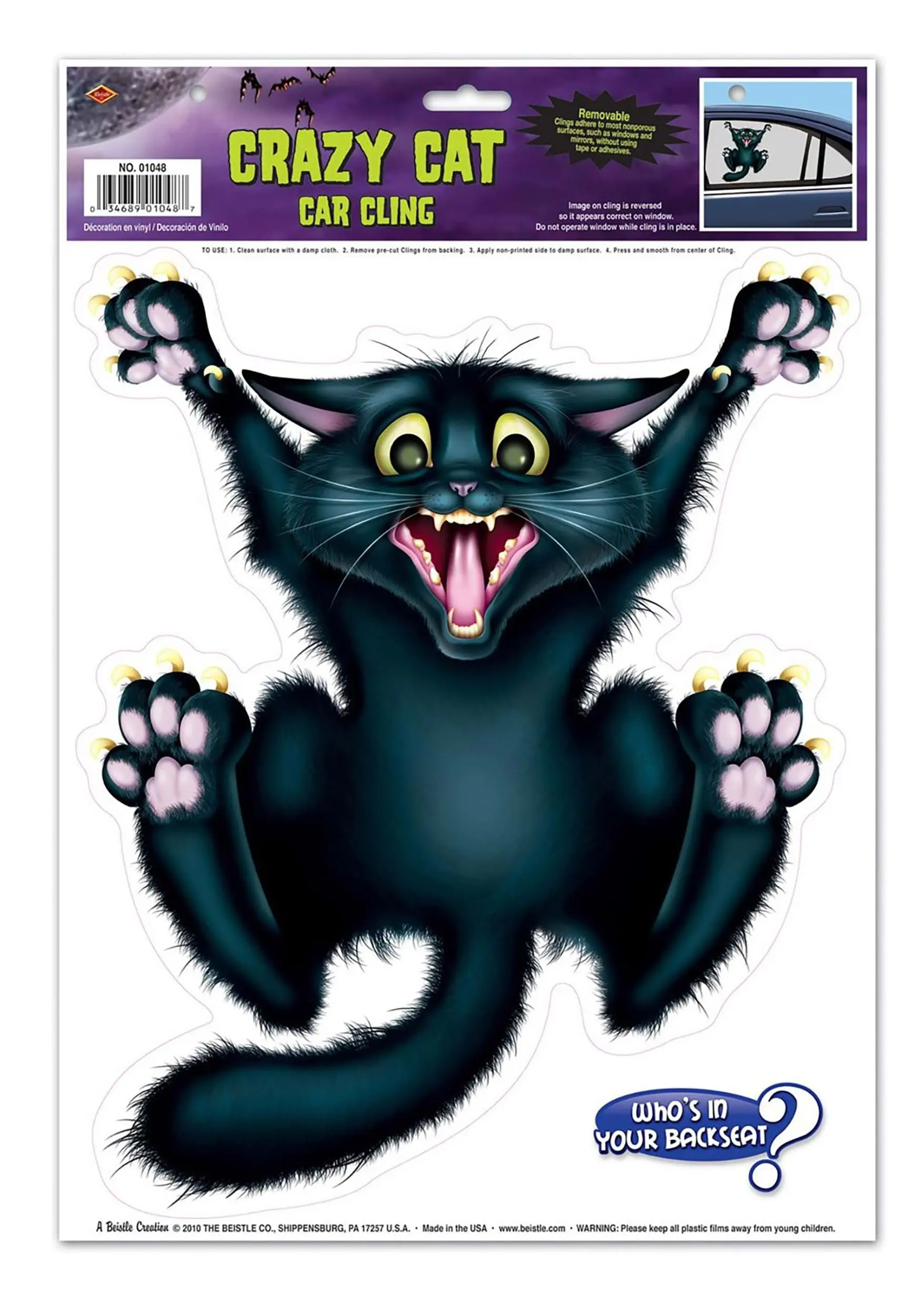 Add a fun and festive touch to your car this Halloween with a Crazy Cat Car Window Cling! The easy-to-apply, safe-to-remove accessory depicts a wide-eyed kitty who is apparently clinging for dear life to your window.Β
