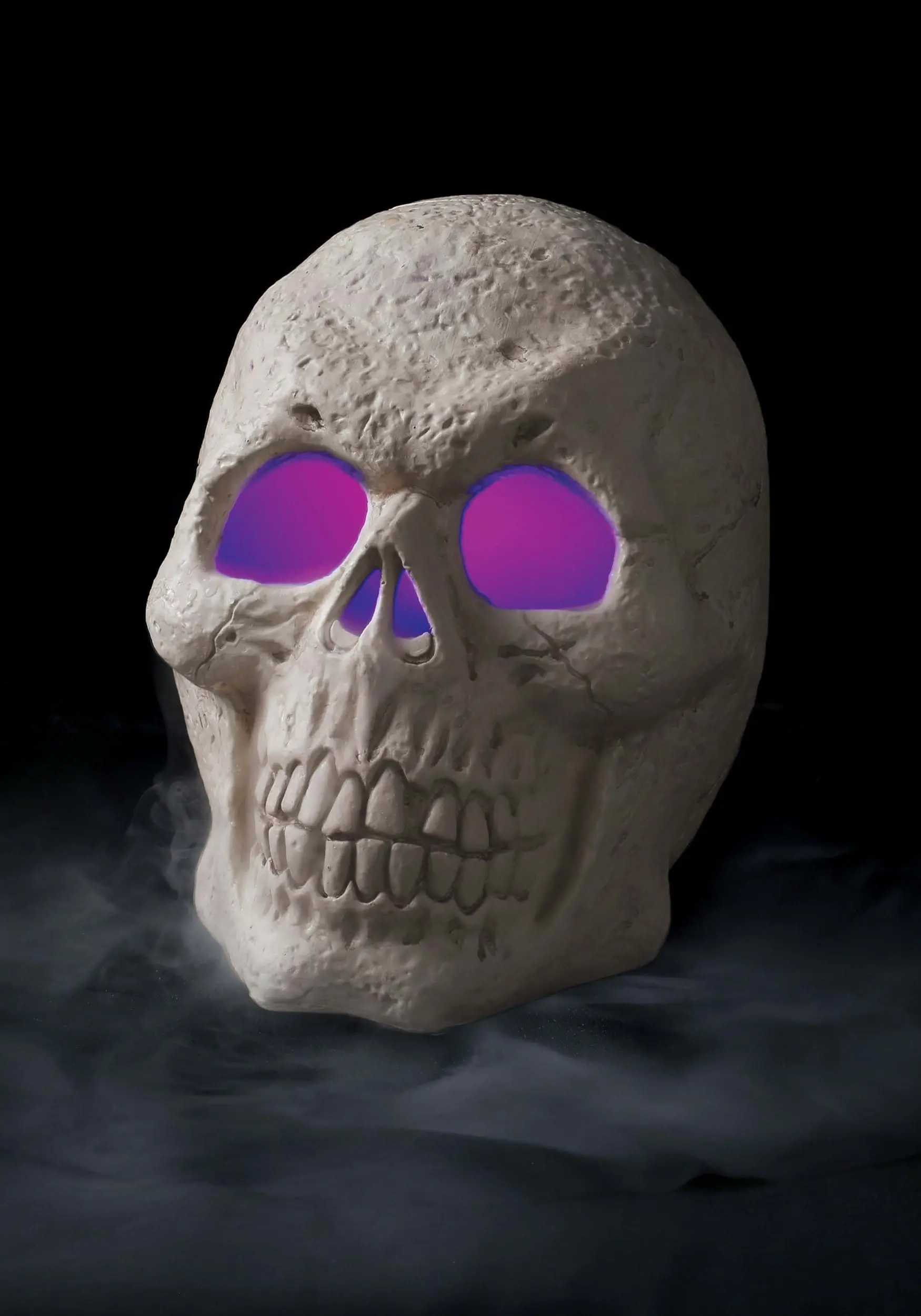 Be sure that the spirit of the season is always with you when you bring home this Misty Spooky Skull decoration. This molded skull is in an eternal grin but it isn’t merely vacant eyes that you’ll be seeing. No! Thanks to the mist machine interior, you’ll see the spiritual essence of this haunted Halloween decor hovering all around it! The softly glowing color-changing eyes will remind you and yours that it is easy to add some spooky fun to your soul.
