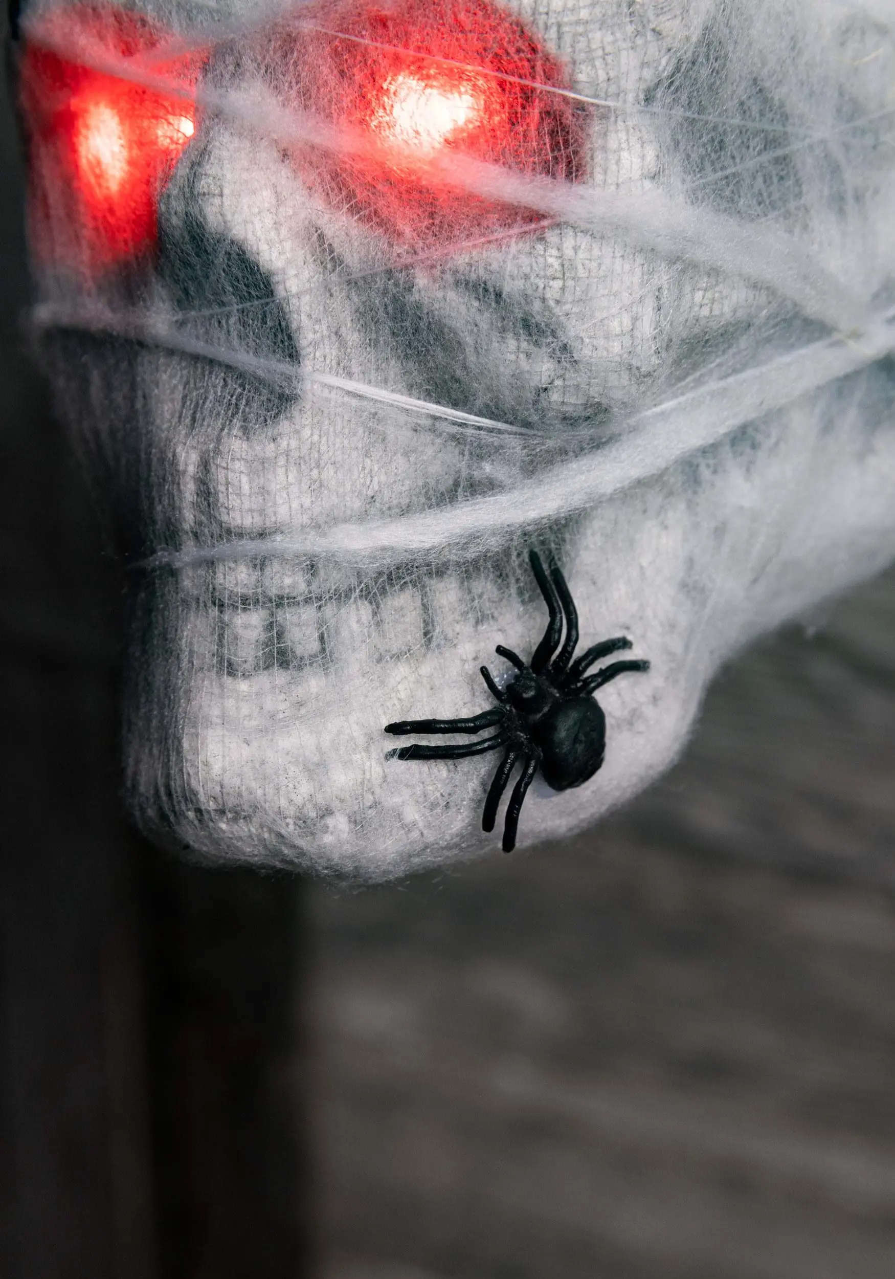 - Skull is covered w/ netting and fake spiderwebs