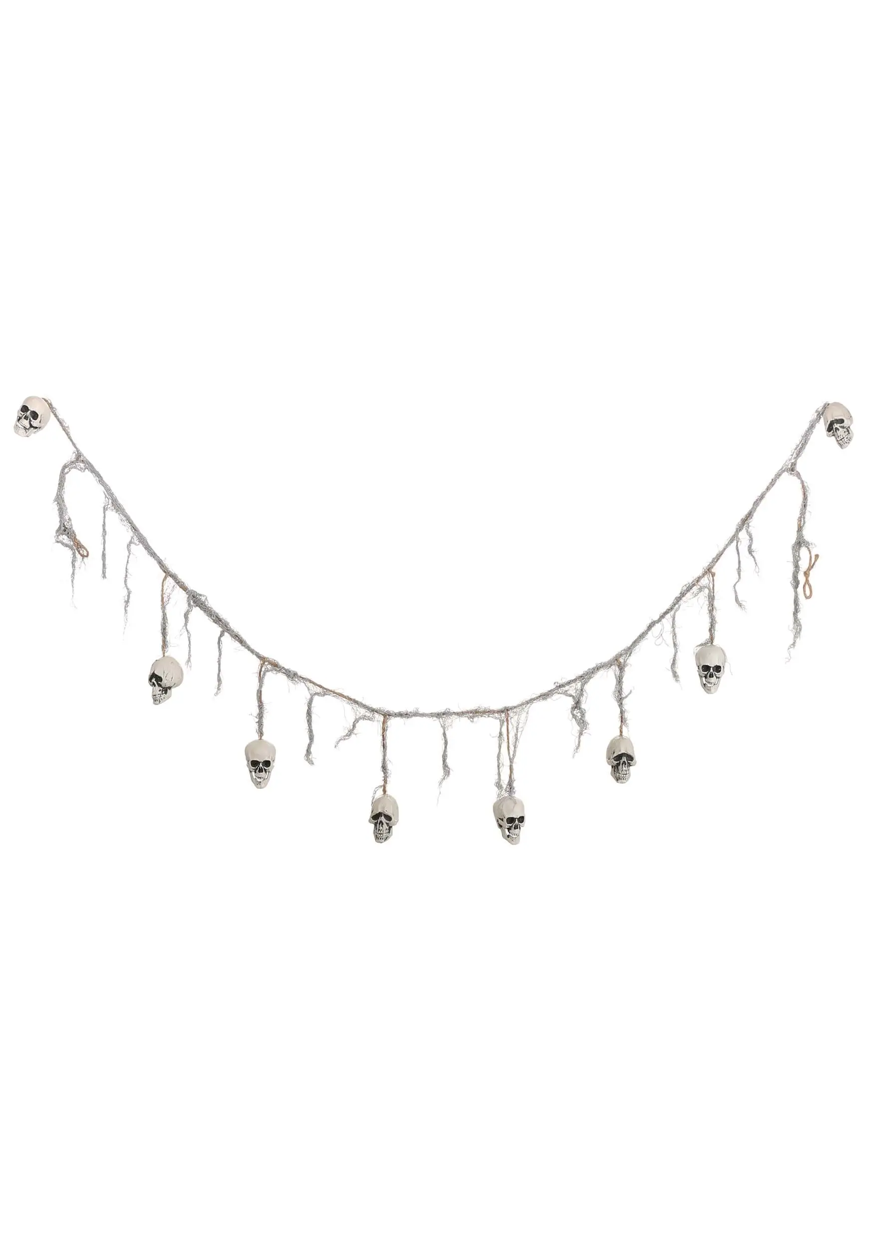 An exclusive item, this great garland can add drama and horror to any surface. It uses a tattered effect on the cord to create a deacying, grave-like appearance, and the little white skulls are shaded to look oh-so-real. Wrap these garlands up a staircase banister, drape them over a bathroom mirror, wind them through your snack table spread, or use them to deck out houseplants that look a bit too lively for the season.