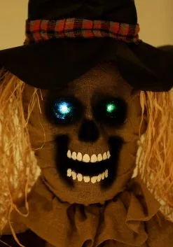 - When activated by sound sensor or step pad, eyes light up, head turns back & forth, figure makes spooky sounds